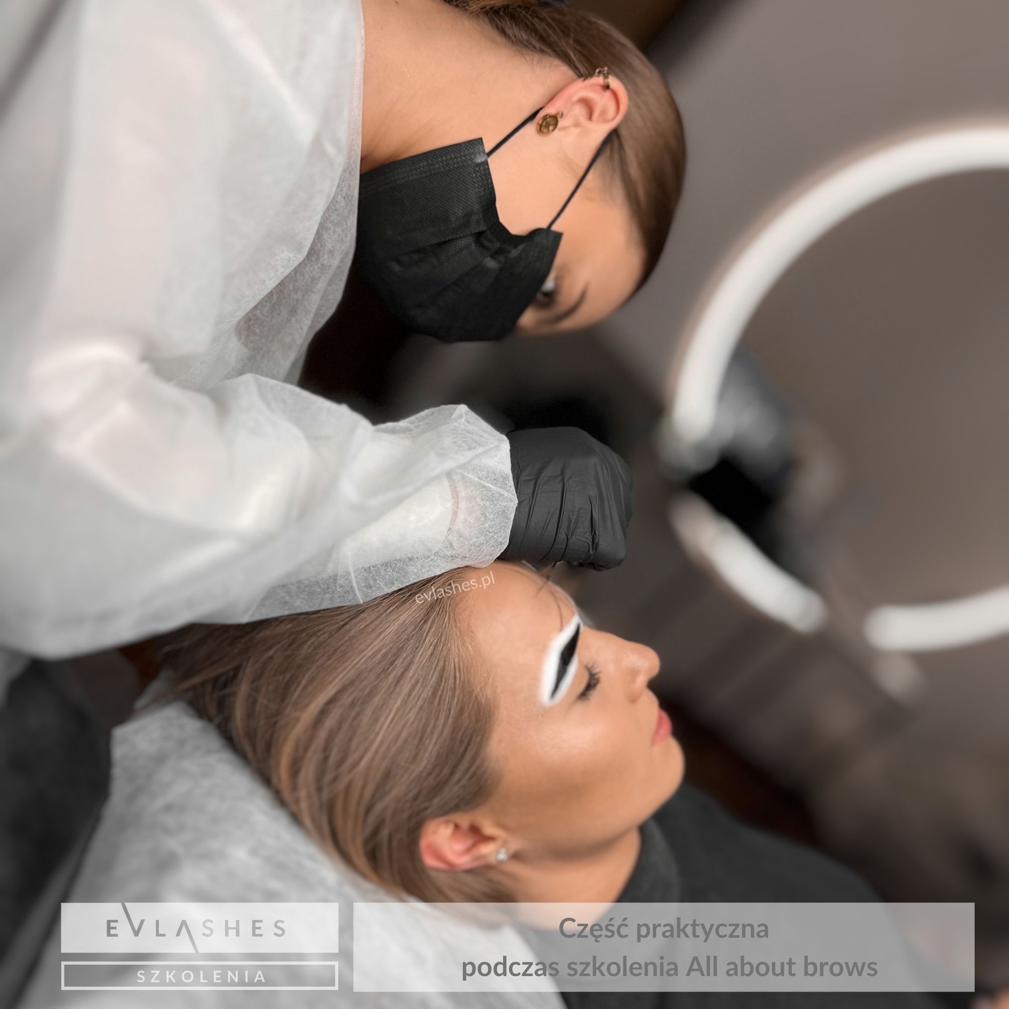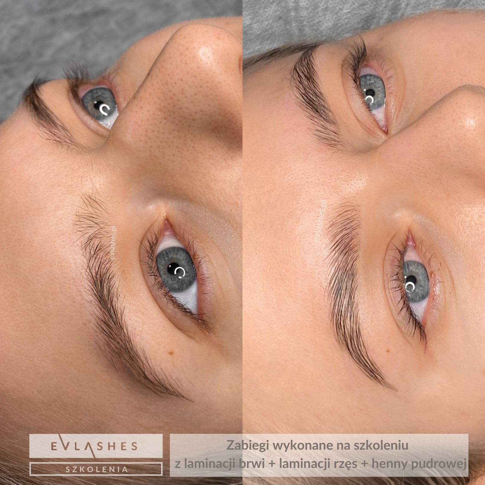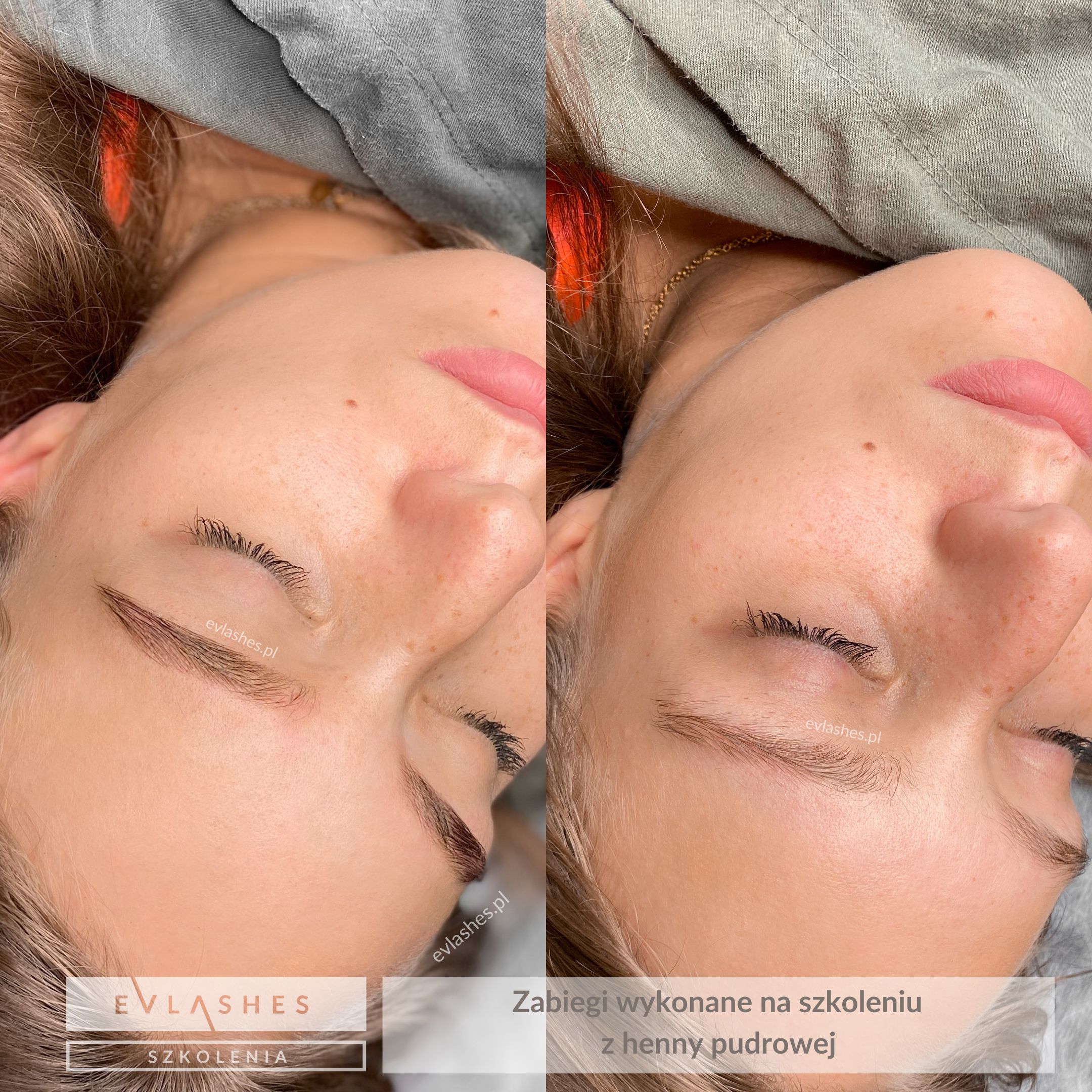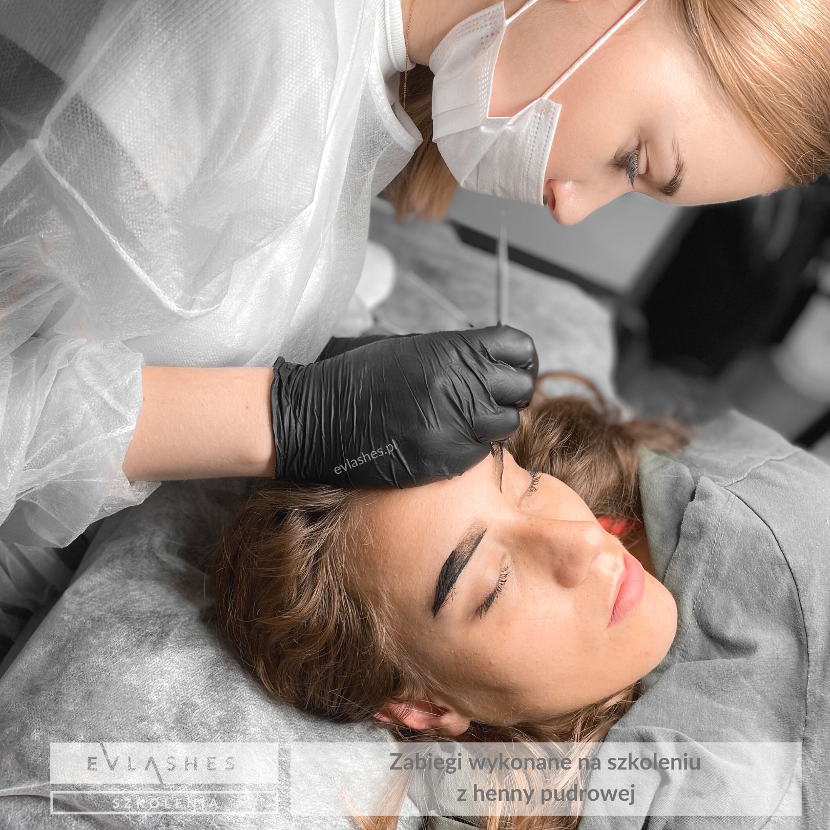 - materiał obejmuje laminację brwi, hennę pudrową, farbki, geometrię, regulację